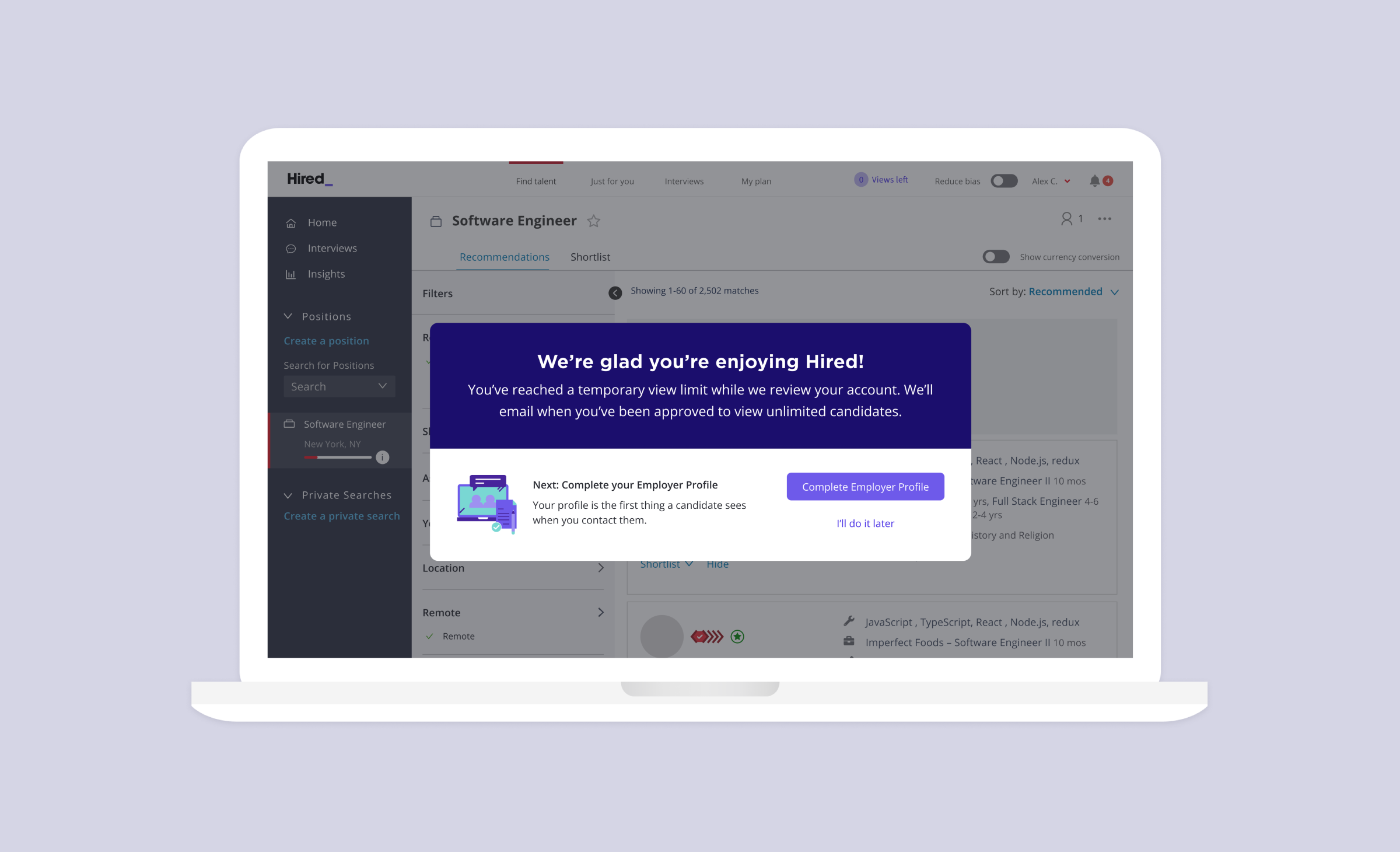 Hired Optimizing the self-serve trial experience for prospective employers